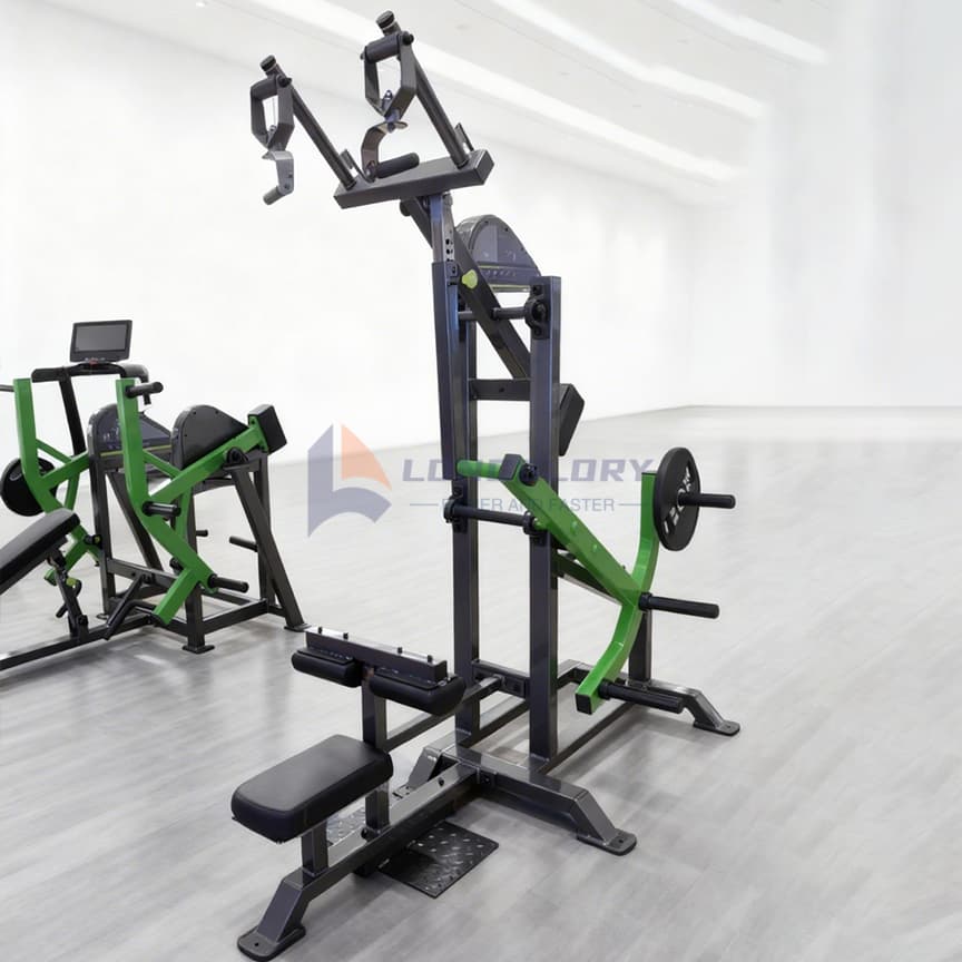 A Commercial Lat Pulldown gép erőteljes hátképzési támogatást nyújt kiváló ergonomikus kialakításával. A nagy teherbírású, kereskedelmi minőségű acélszerkezettel rendelkező Commercial Lat Pulldown hosszú távú tartósságot és teljesítménystabilitást biztosít nagyfrekvenciás edzőtermi használat mellett. Az állítható combpárnák biztosítják a felhasználókat a lehúzó mozgások során, míg a kiváló minőségű szíjtárcsák sima kábelvontatást biztosítanak a hatékony és kényelmes edzésekhez.